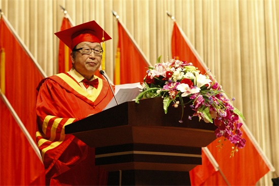 “过去的四年,你们见证并推动了学校蓬勃发展。今天,你们即将告别母校,投身到一个日新月异、风云变幻的时代。国家的发展,社会的变革,互联网对一切事物颠覆性的改变,信息化、智能化的到来,改变了人们的生活方式,不断创造新的产业模式,促使新兴产业发展步伐不断加快……创新已经成为社会发展和变革的主要驱动力,文化创新是一个民族发展的核心动力,中华民族优秀传统文化需要传承,更需要创新。作为文化创意产业人才,你们的创新思维、创意理念,创造精神,正是这个时代迫切需要的,你们有得天独厚的优势和条件。”他同时希望同学们在事业发展上不要好高骛远,导致梦想半途而废。在人生道路上,守住底线,做一个有社会责任感的人。并且珍惜缘分,让美好的同窗情谊伴随一生。